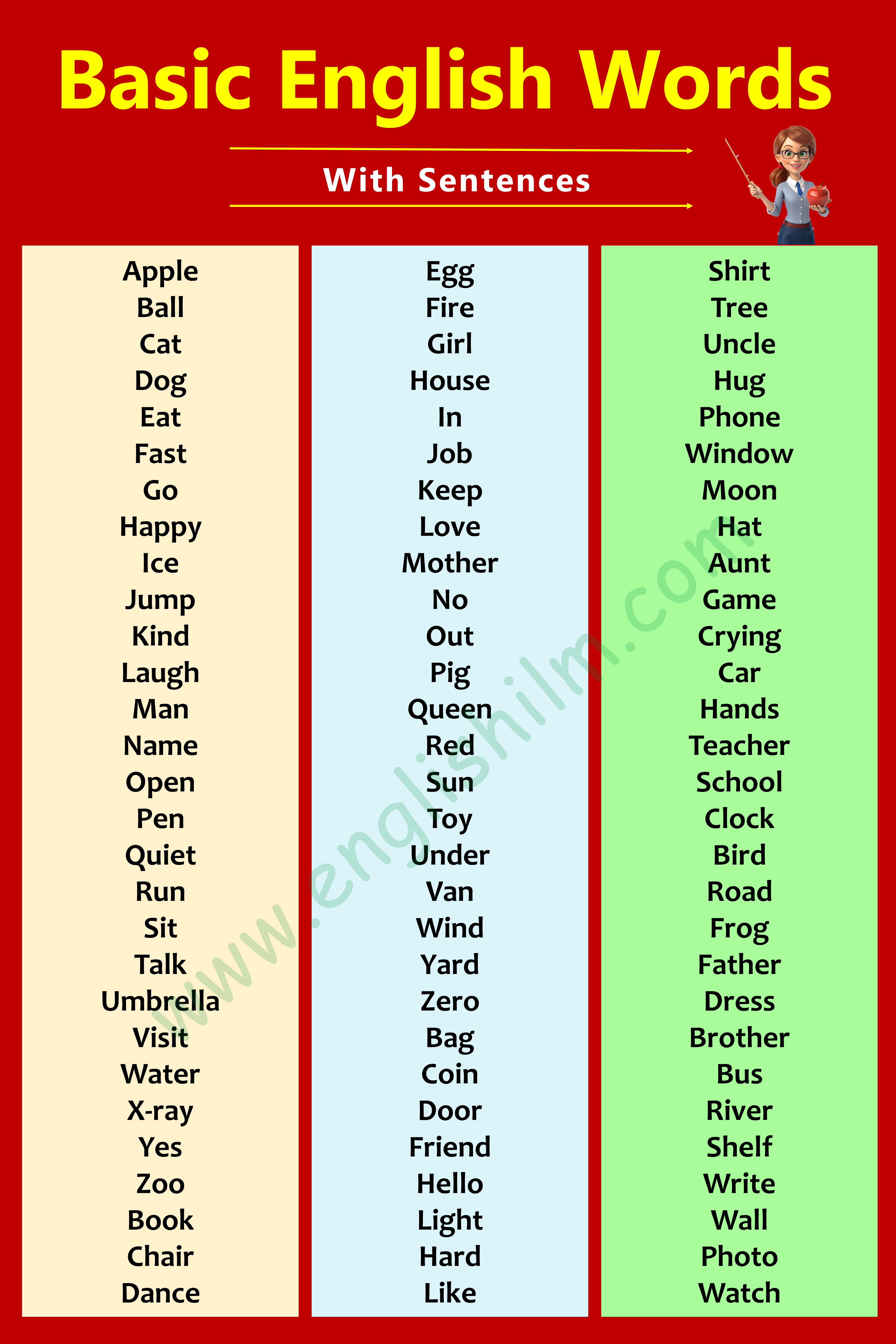 Learning basic English words is the first step to speak and understand English better. Use this list daily, make your own sentences, and grow your vocabulary. Stay consistent and enjoy your learning journey!
