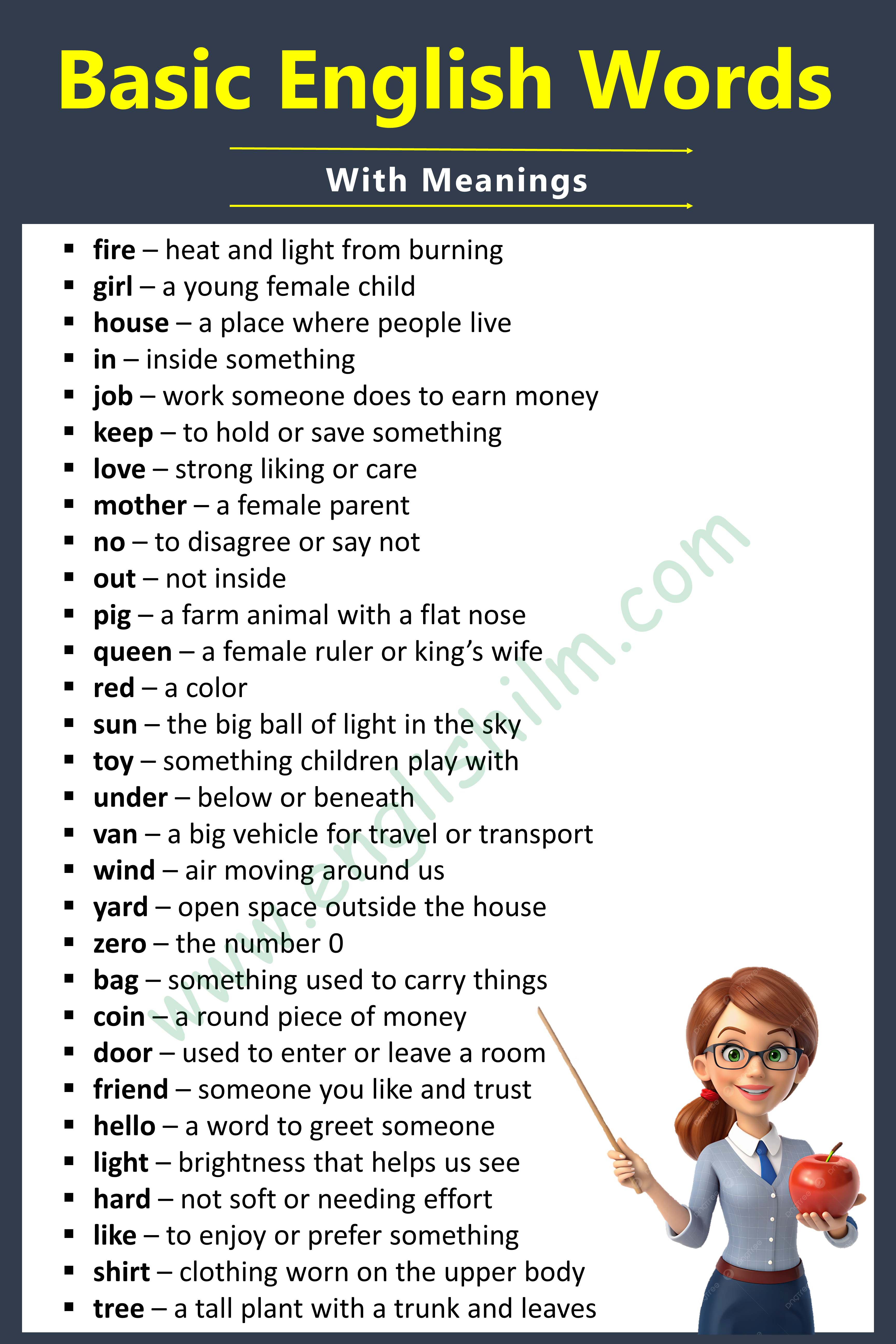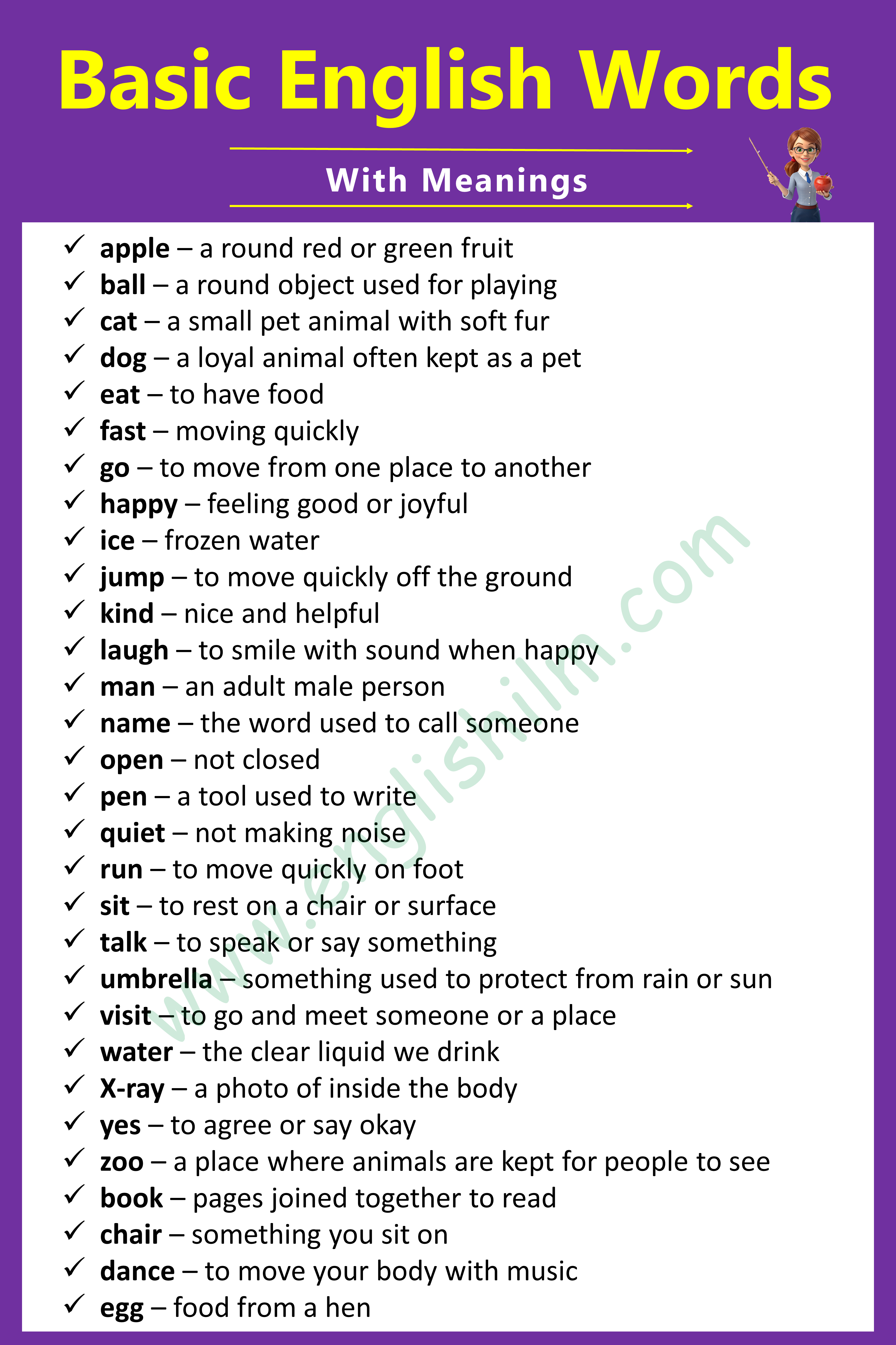 100 Basic English Words with Meanings